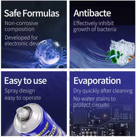 | Properties | Fast-drying, residue-free, safe on electronics |