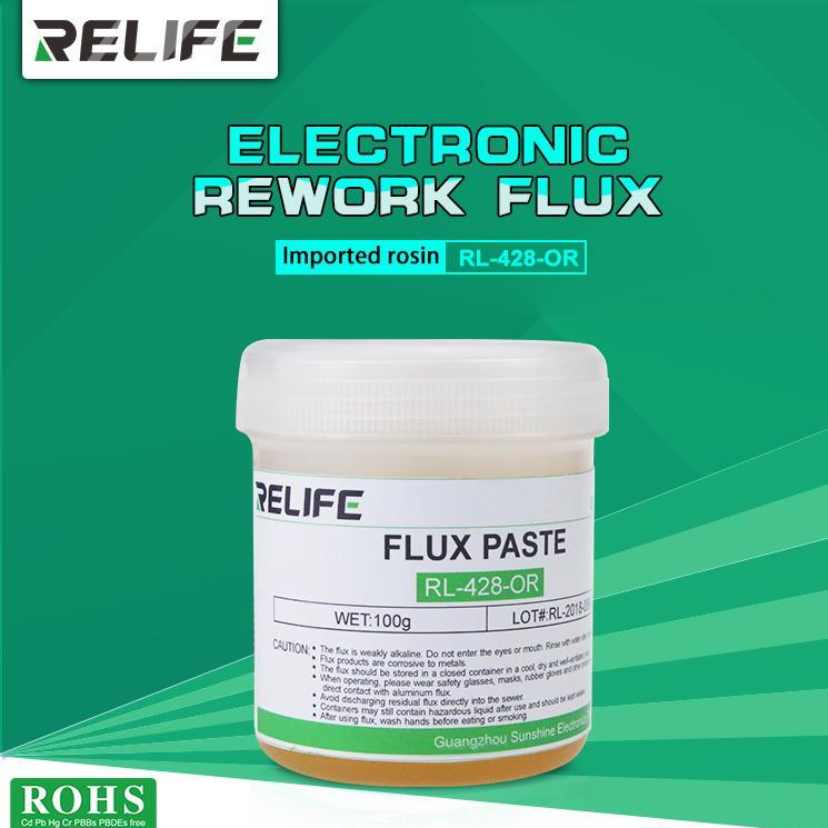 RELIFE RL-428-OR Paste is a highly active, halogen-free, viscous soldering paste. Due to its high insulation resistance, it can be used for PCB soldering and rebelling.